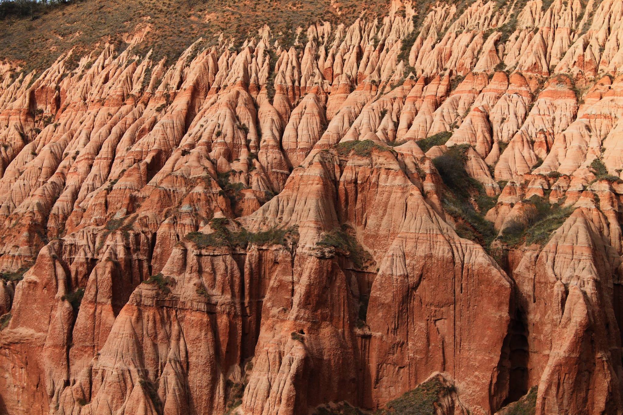 A könnyen erodálódó és eltérő cementáltságú összlet a meredek domboldalon hamar a felszínre került, s a lefolyó vizek gyorsan erodálni kezdték. A lefolyó víz aprólékosan felszabdalta a vas-oxidoktól és -hidroxidoktól vörös színű üledékeket. A meredek domboldal az erózió miatt védtelenné vált, a növényzet és a talaj eltűnt róla. Ezeket a növényzet nélküli, felszabdalt területeket “bad land”-eknek nevezzük.