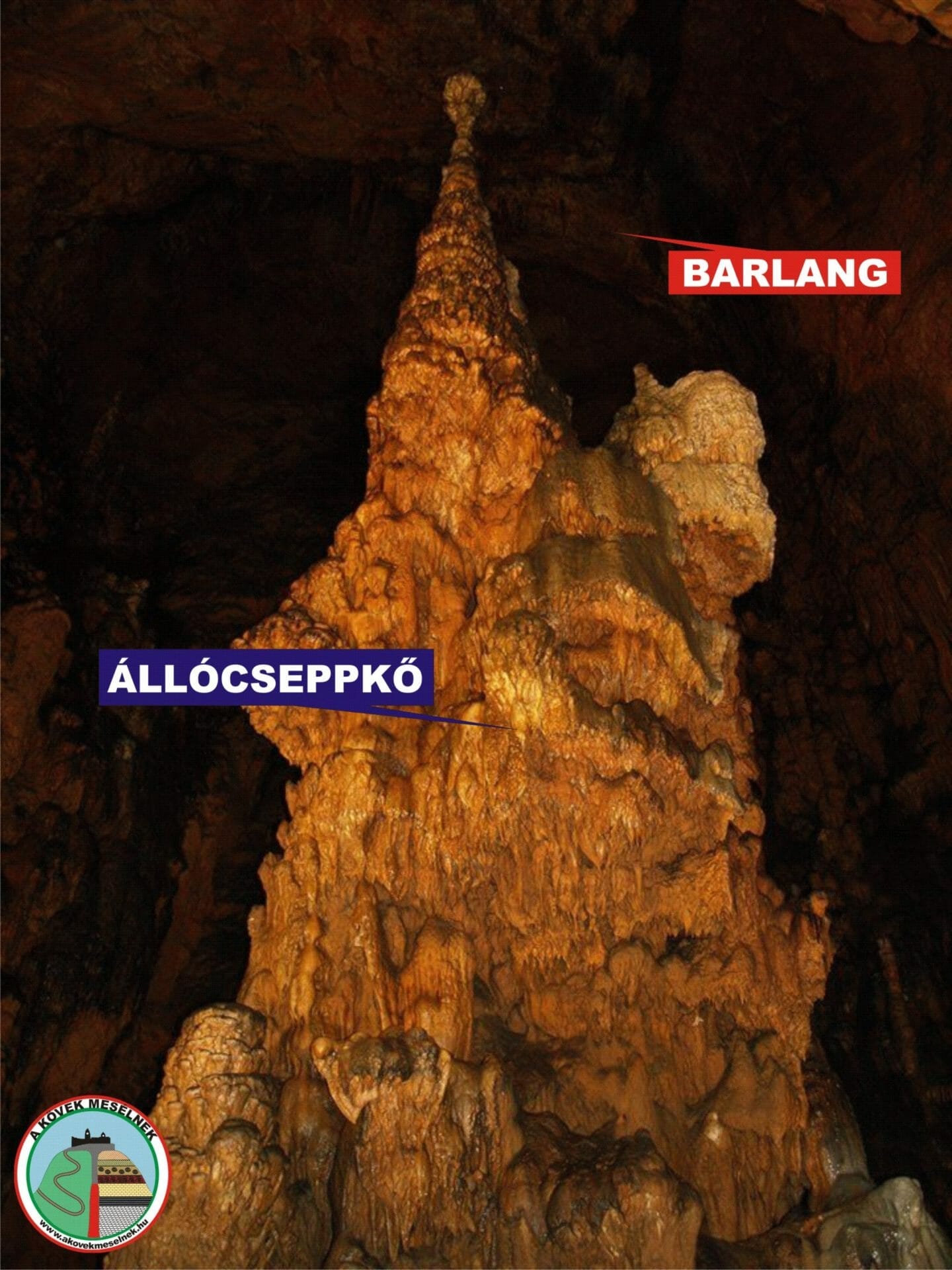 A képen az Aggteleki-karszton található Baradla-barlang (sőt egész Európa) egyik legnagyobb (álló)cseppköve, a 20 m magas Csillagvizsgáló egy részlete látható.
