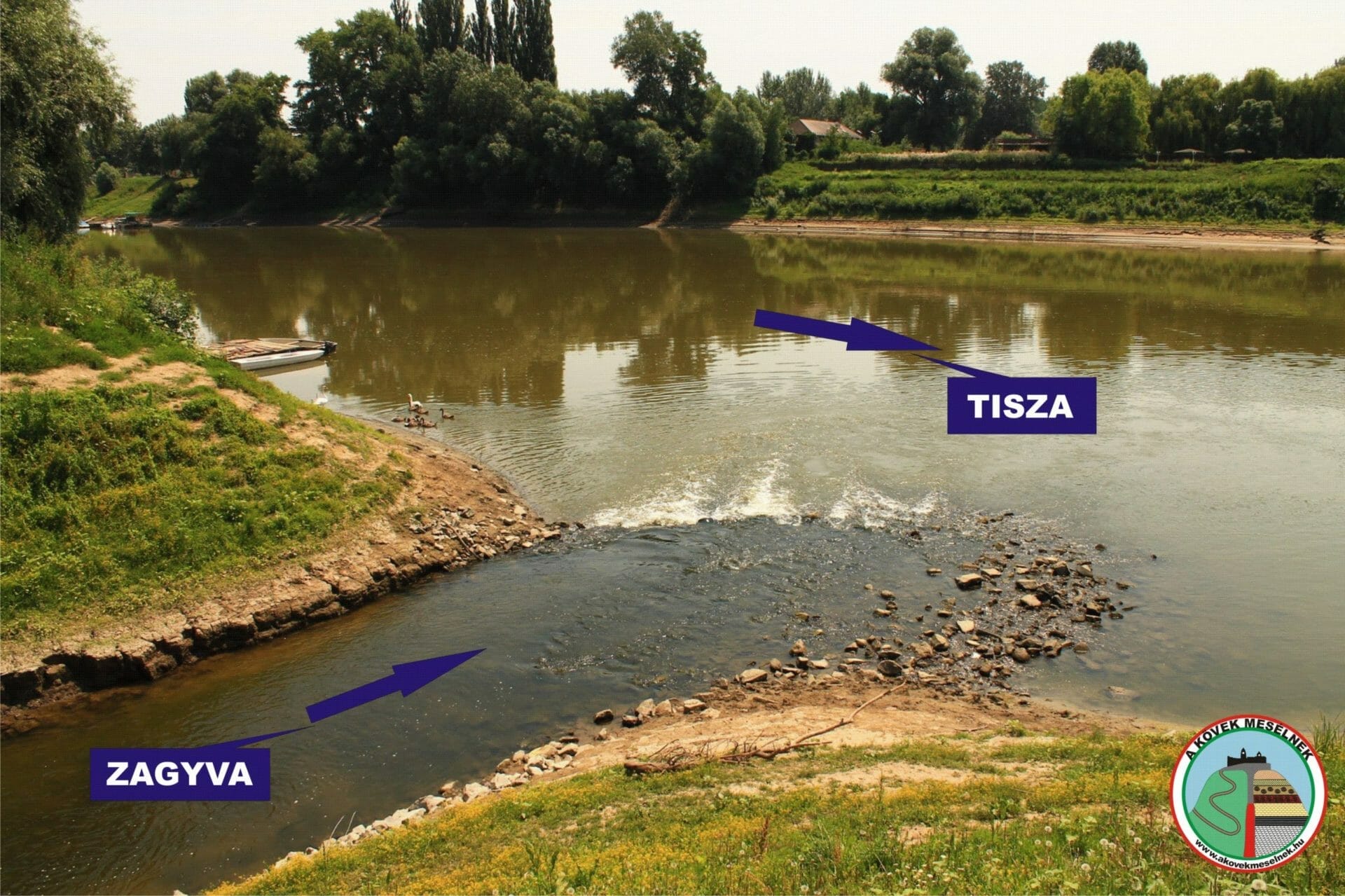 A kép érdekessége, hogy a humuszvegyületek nagyobb mennyisége és a kevesebb lebegtetett hordalék miatt sötétebb színű Zagyva az egykori szolnoki vár mesterségesen kiásott árkában (16. század) szállítódik bele a “szőke” Tiszába.