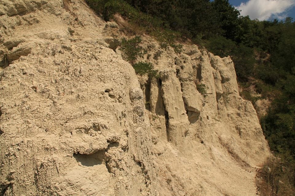 A “Zsidótemplom” esetében a felszín közelében lévő laza tufa anyagát a lejtőn lefolyó csapadékvizek vonal menti (lineáris) eróziója fokozatosan felszabdalta, önálló kis kúpokká formálta (ezek közül a legnagyobb az ún. Süveg). A növényzet által védtelen felszín kialakításában tömegmozgásos folyamatok is részt vehettek. Egy másik érdekes mikroforma és lepusztulási folyamat egyben az ún. gyertyásodás, amely a csatolt képen is jól látható. Az időszakosan átnedvesedő és a mállási folyamatok miatt agyagásványokat is tartalmazó laza tufa “megfolyása” miatt alakulnak ki ezen ritka és különleges formák.